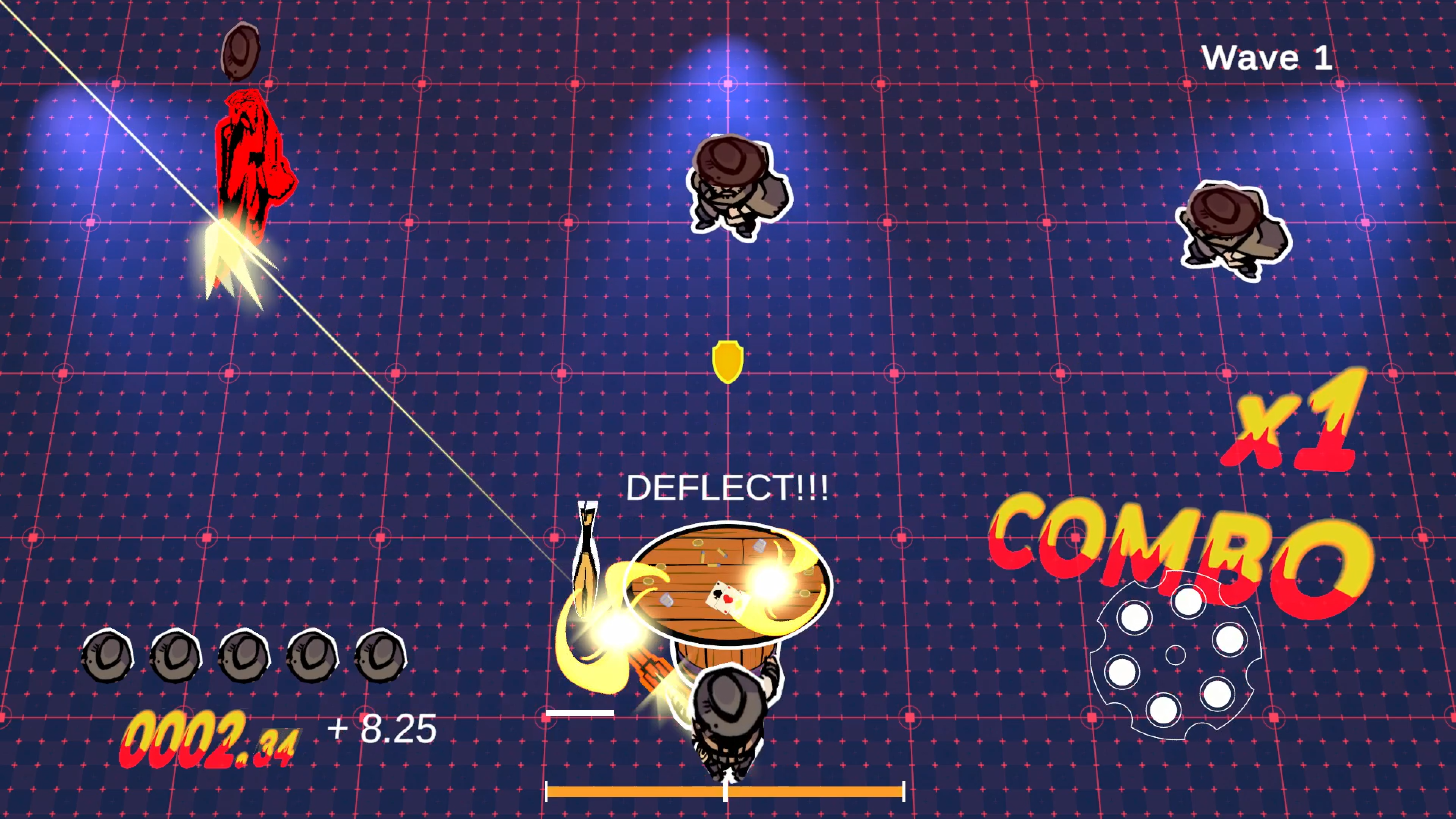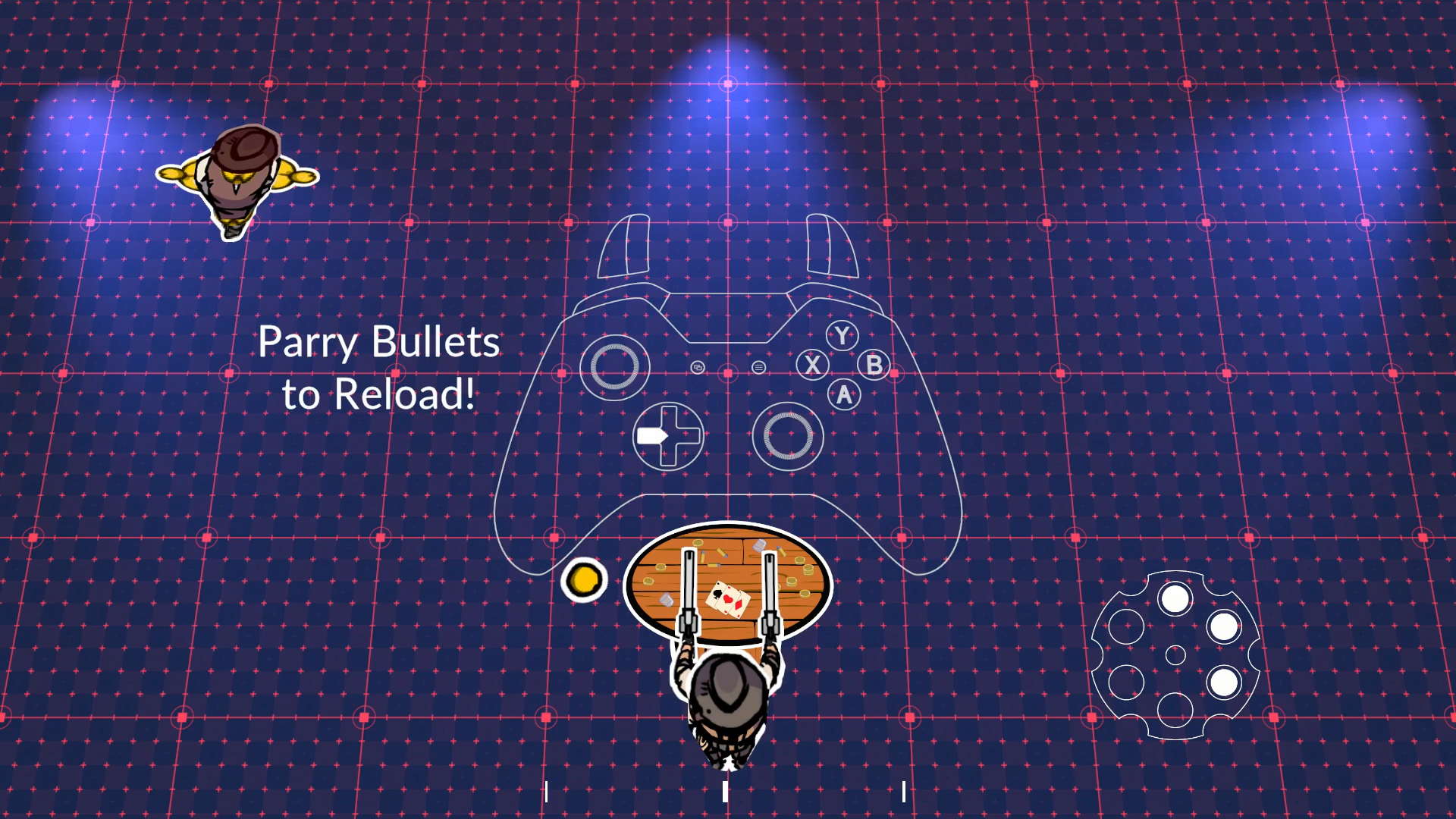 Mire e atire, gire suas armas ou apare projéteis para recarregar; apare no momento exato para defletir balas de volta contra seus inimigos! Cada tiro disparado contra você é uma oportunidade — se você tiver habilidade para transformar defesa em ataque.